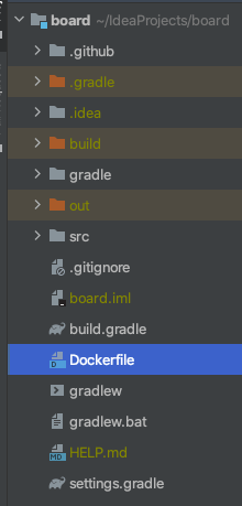 Dockerfile의 위치는 루트 바로 밑에 있습니다.