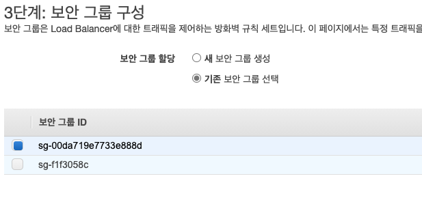보안그룹을 선택해야 하는데 저는 기존에 만들어 놓은 그룹이 있어서 그것을 사용하였습니다. 만약 없으시다면 보안그룹을 새로 만든뒤 보안 안그룹 정책에서 80포트와 443포트를 열어주세요 그후 다음을 눌러줍니다