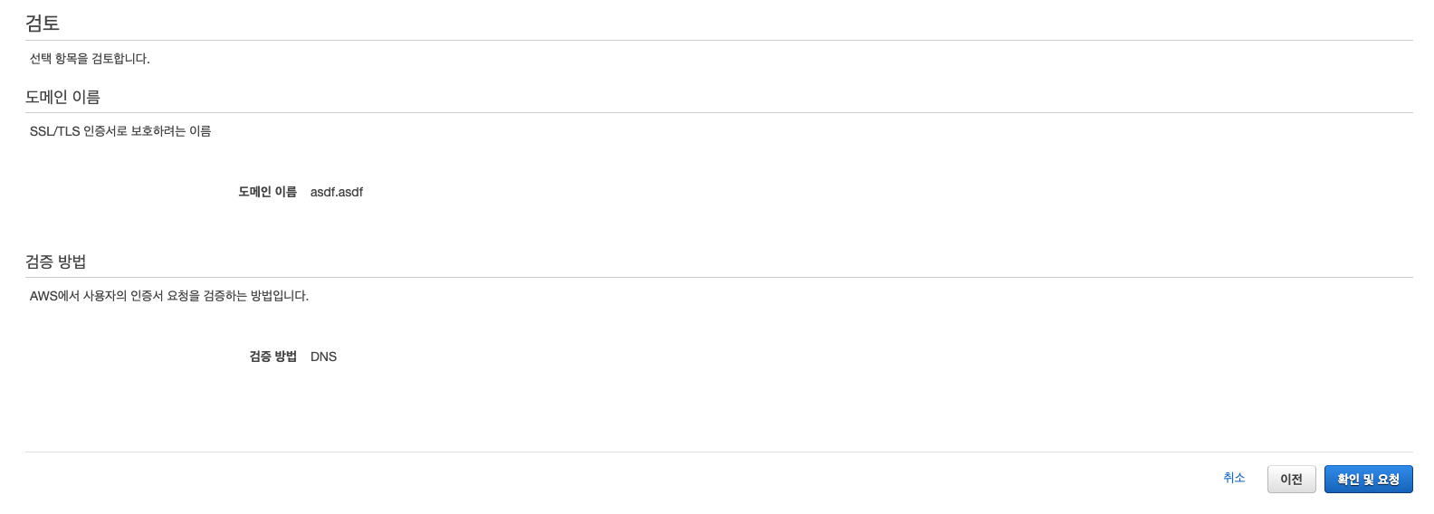 검증 방법은 DNS검증을 하겠습니다. 다음을 눌러 줍니다.