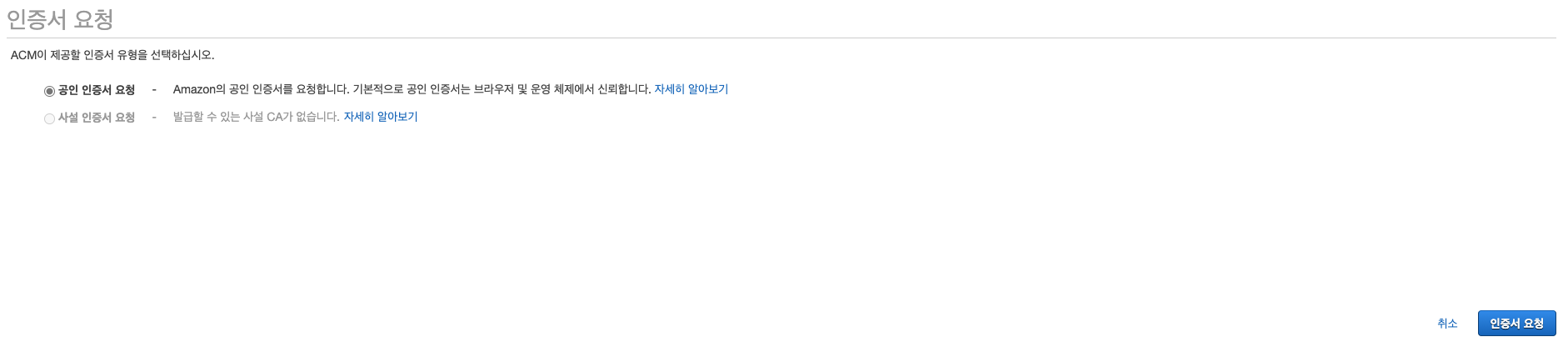먼저 AWS로 들어가서 ACM 메뉴로 들어가 줍니다.