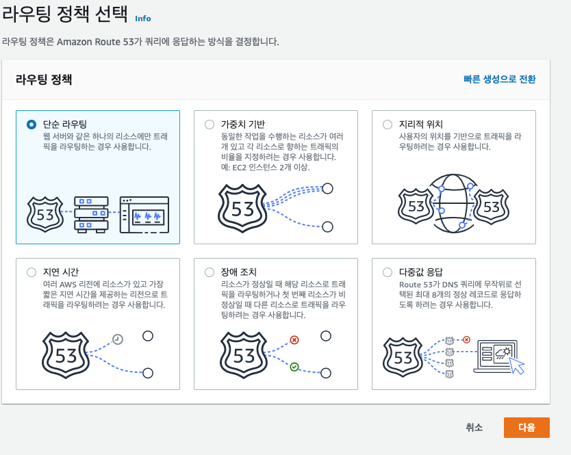 단순 라우팅을 선택한뒤 다음을 눌러줍니다