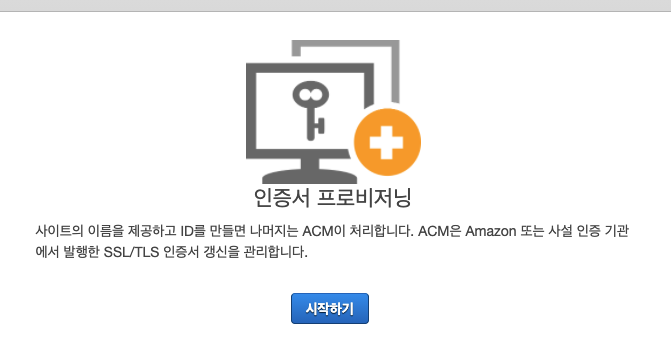 먼저 AWS로 들어가서 ACM 메뉴로 들어가 줍니다.