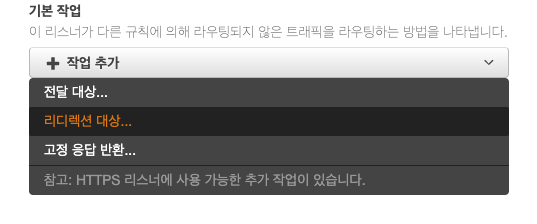 휴지통을 눌러 삭제해 주신뒤 작업 추가를 누른뒤 리디렉션 대상을 눌러줍니다.